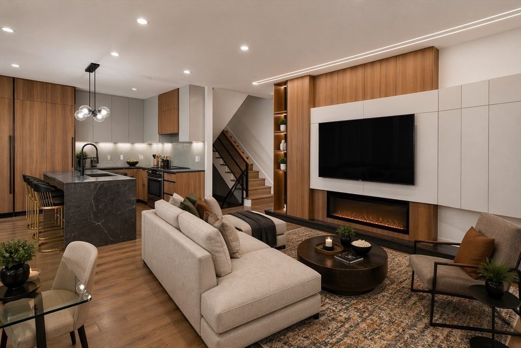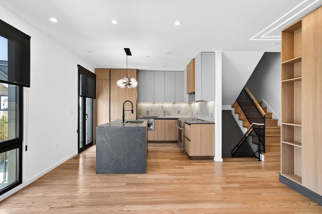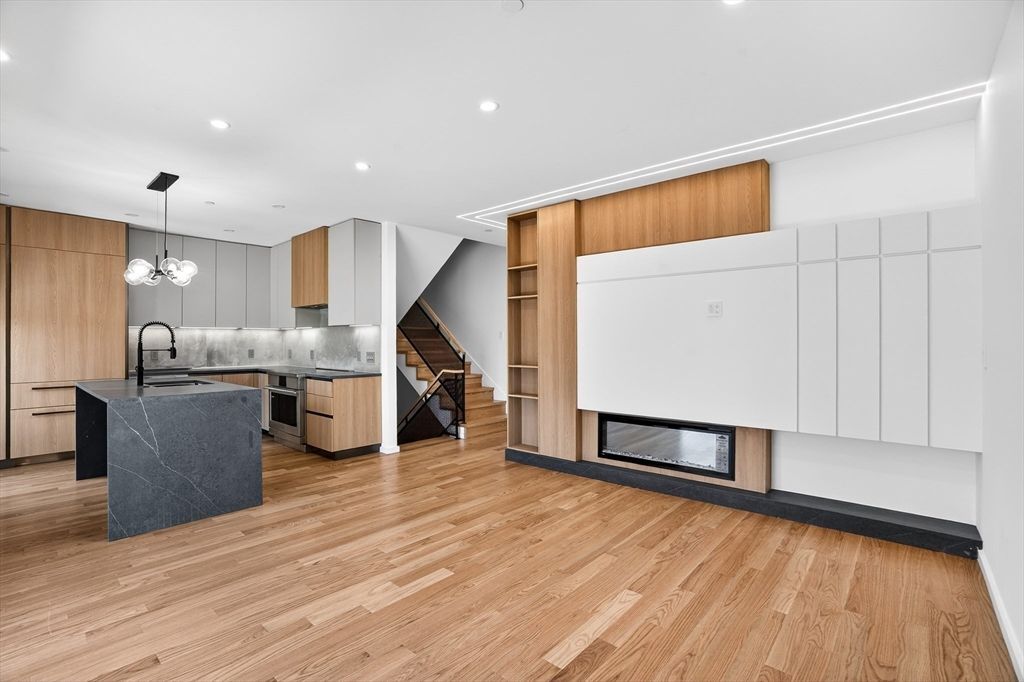 Stunning new construction in the heart of Chestnut Hill, this exceptional townhome blends a striking Scandinavian farmhouse exterior with curated interior finishes across 4 bedrooms 4.5 baths, 1 car garage. A welcoming foyer with custom mudroom opens to a bright living space featuring a gourmet kitchen with Italian cabinetry, mixed-material detailing, and high-end appliances. The open concept family room includes a sleek fireplace and access to a private patio. Upstairs, the luxurious primary suite offers a custom feature wall, tray ceiling, and spa-like bath. Two additional bedrooms, a full bath, and laundry complete this level. The attic level adds flexibility with a second primary bedroom, full bath, and entertainment space ideal for guests or an au pair. A private roof deck with city views provides an outdoor escape. Set on a quiet side street near Coolidge Corner, shopping, dining, parks, hospitals, green line, and Boston College.